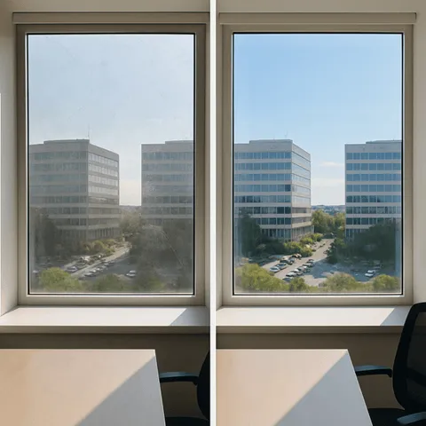 Запущенные рамы наносят прямой финансовый ущерб предприятию. Падение светопропускания на пятнадцать процентов меняет поведение сотрудников. Люди раньше включают потолочное освещение. Ежемесячные счета за электричество растут. Слой городской пыли работает как плотный тепловой экран.