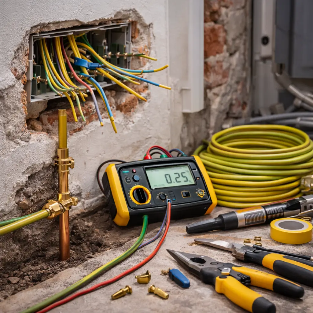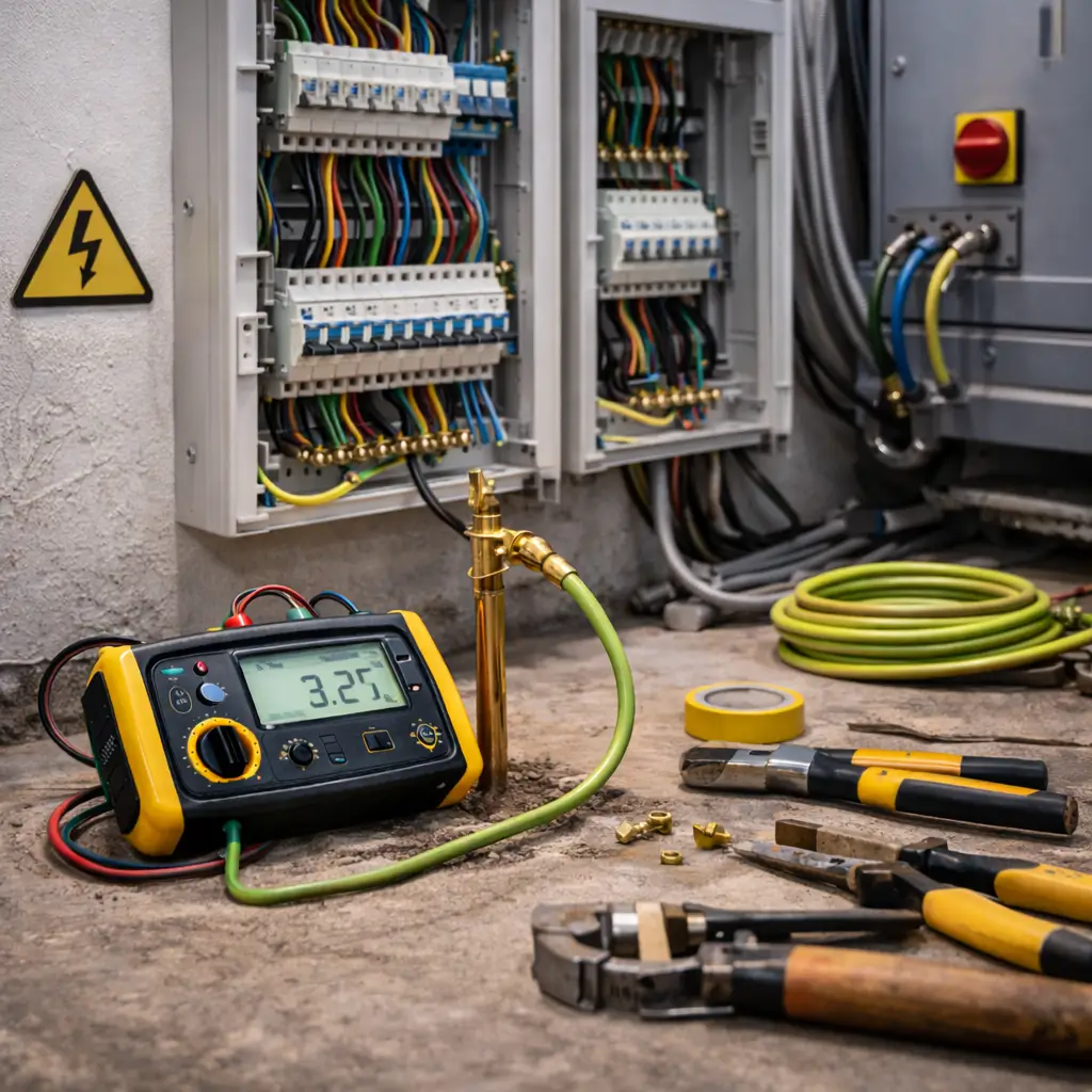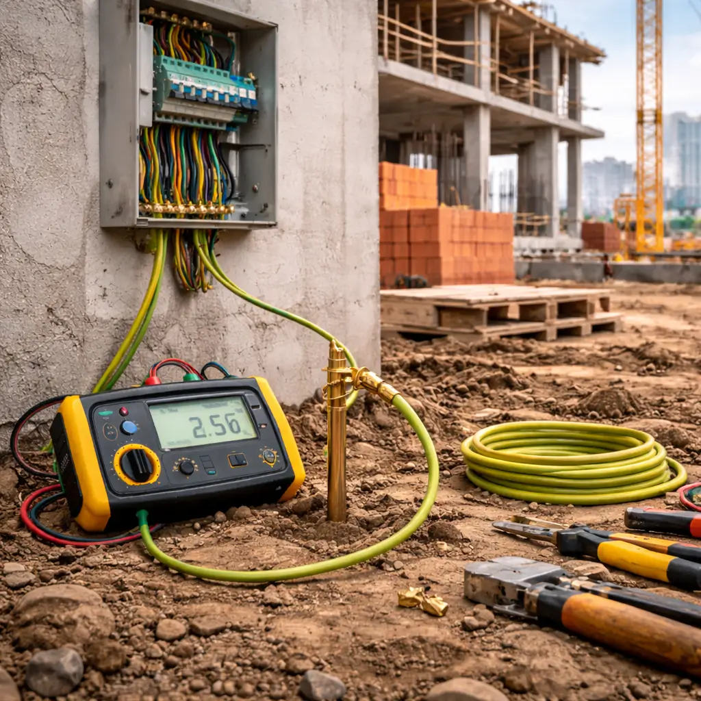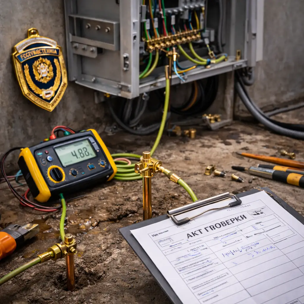 Медный проводник сечением 10–16 мм 2 соединяет внешний периметр с главной заземляющей шиной (ГЗШ) внутри здания. От этой точки защитные линии распределяются по всем электроточкам объекта. При возникновении утечки ток направляется по пути наименьшего сопротивления в землю, инициируя срабатывание защитной автоматики (УЗО).