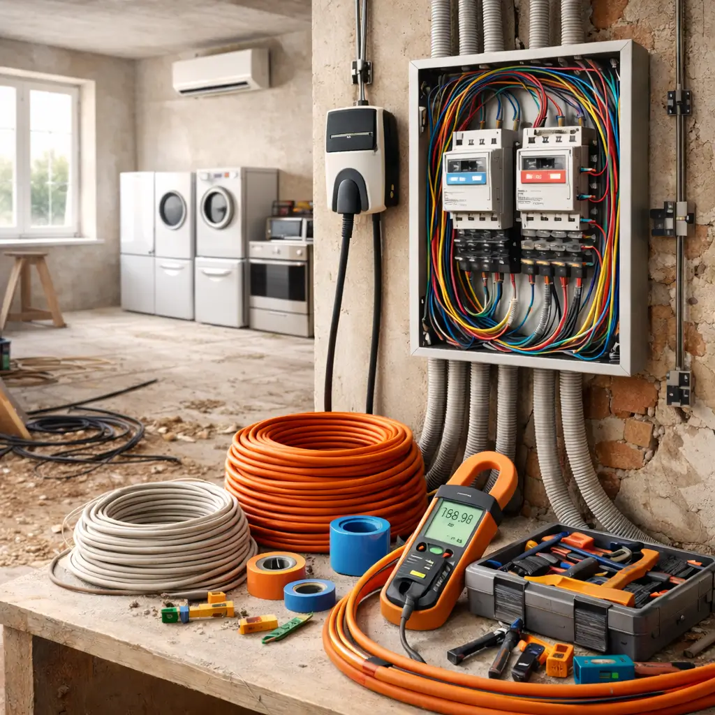 Современная электрика под технику: расчёт +30% нагрузки, УЗО 10–30 мА, негорючие кабели ВВГнг-LS, гарантия 5 лет!