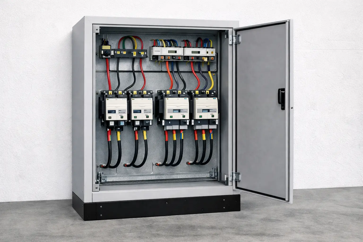 Используем силовые компоненты ABB, Schneider Electric и CHINT. Реализуем коммутацию до 630 А с ресурсом контакторов от 1 млн циклов, что обеспечивает стабильную работу АВР в режиме 24/7.