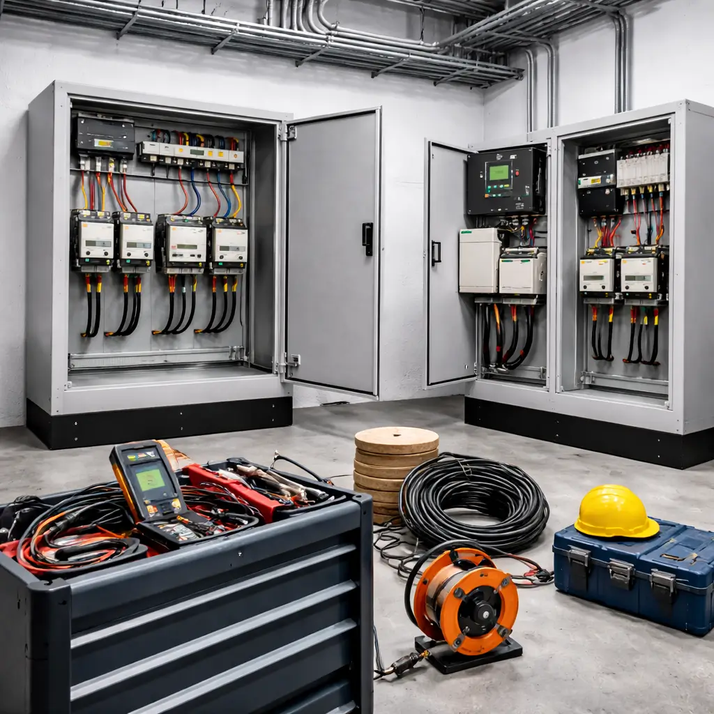 Монтаж выполняется строго по ПУЭ, СП 256 и действующим нормам. Реализуем межблокировки, контроль фаз и защиту от встречного включения, передаём заказчику схемы и уставки АВР.