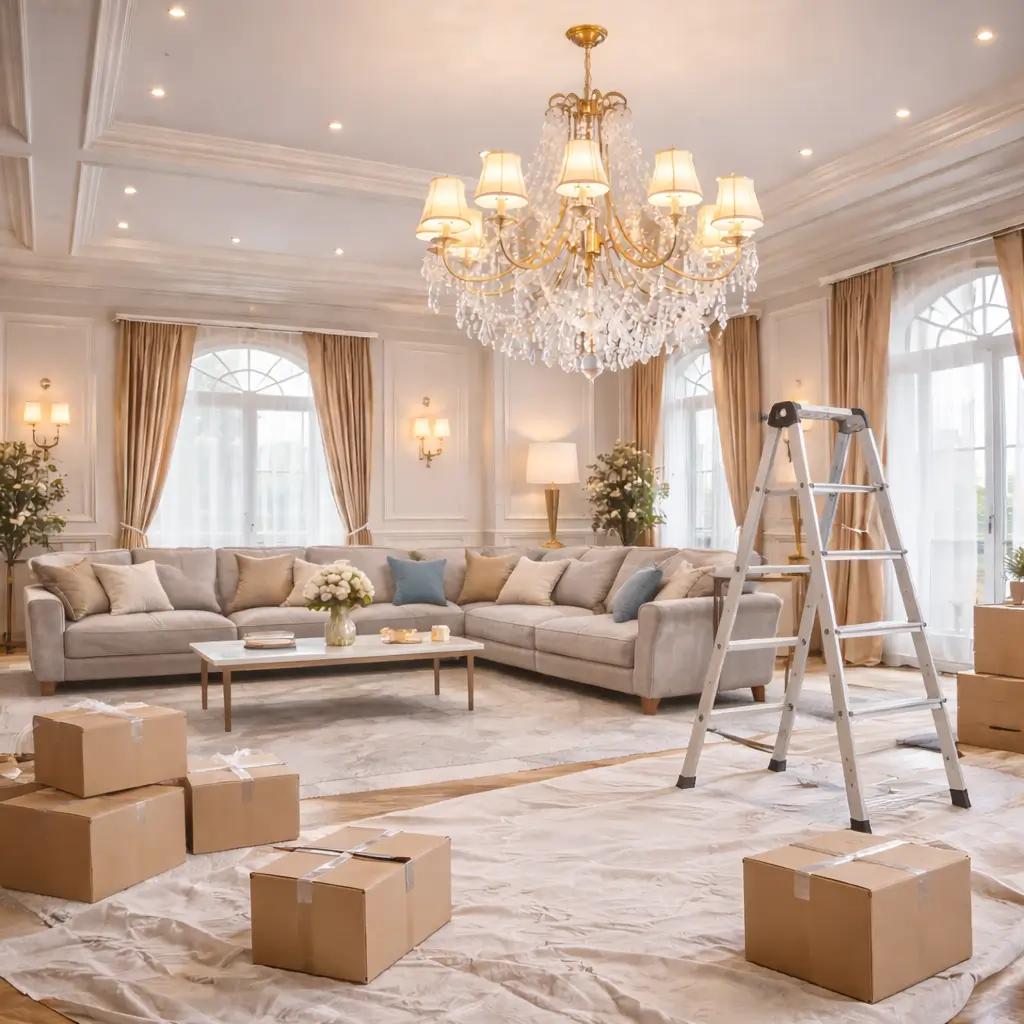 Цена на установку люстры начинается от 50 000 сум. Мы предлагаем доступные расценки без скрытых платежей, при этом всегда сообщаем стоимость до начала работы.
