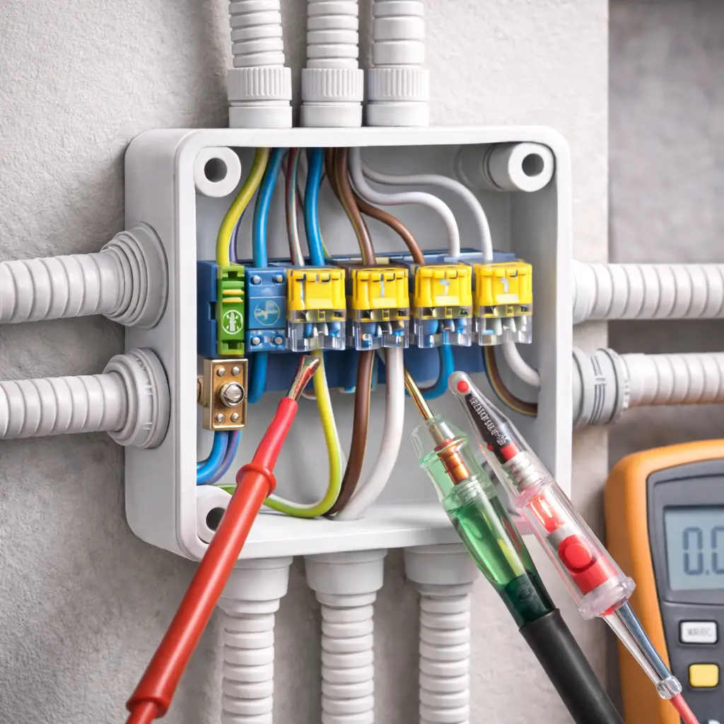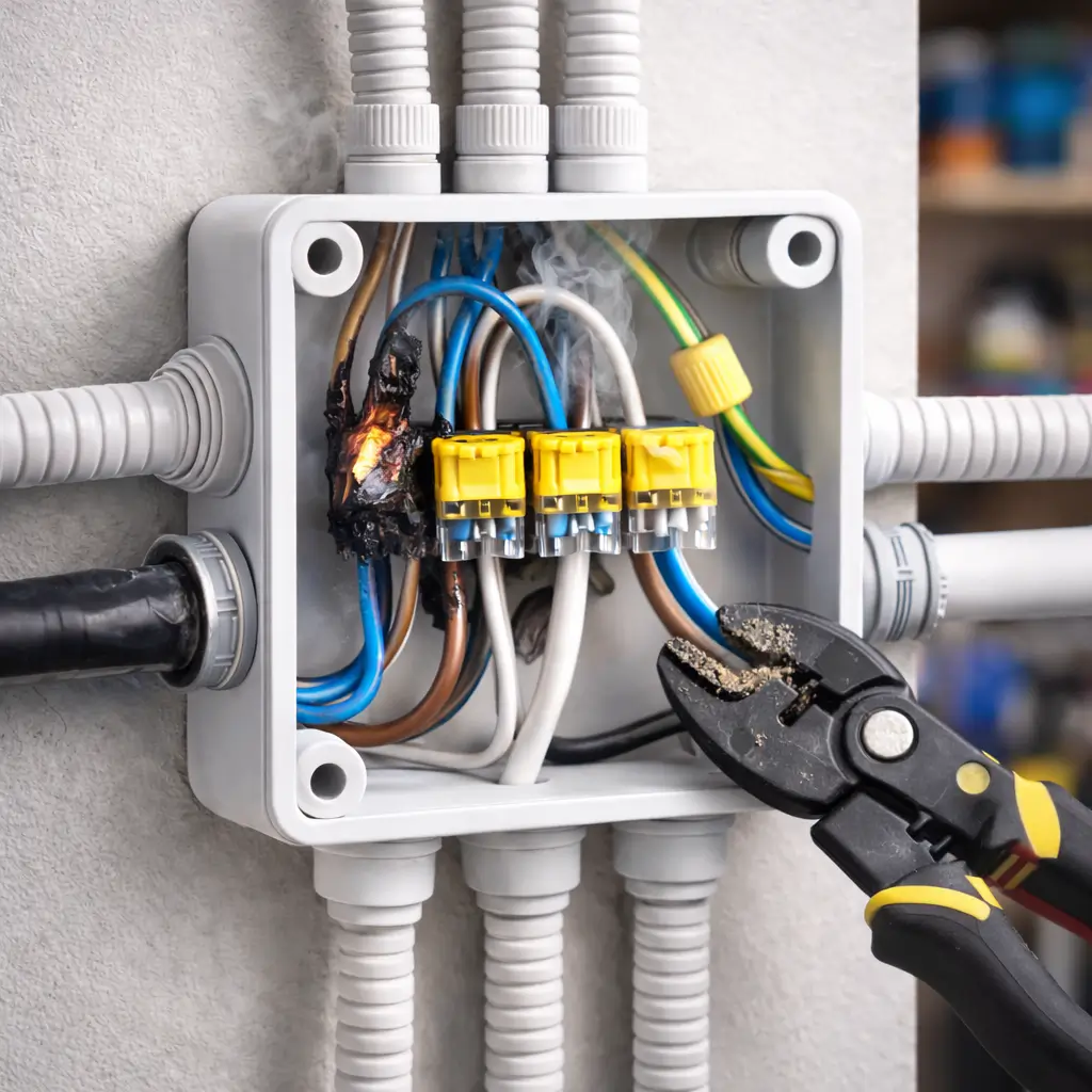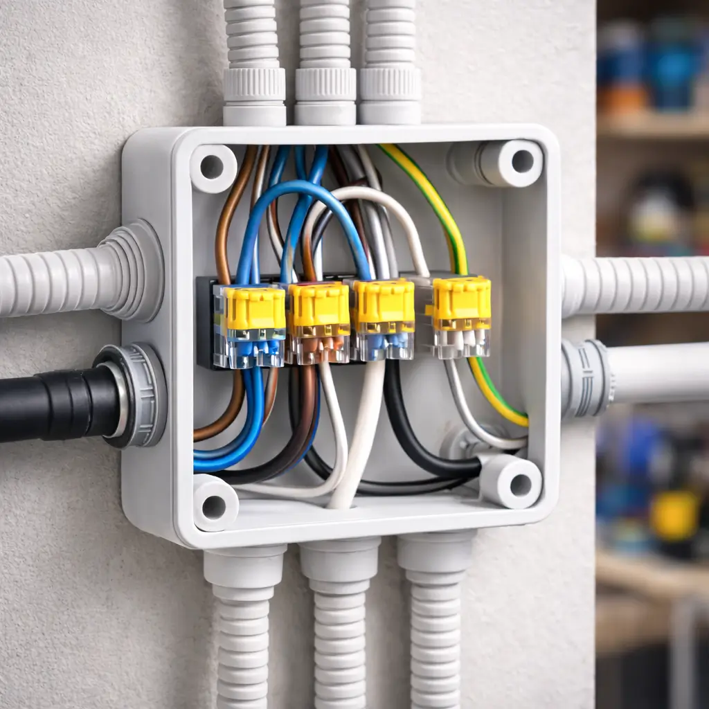 Правильная коммутация внутри коробки снижает вероятность короткого замыкания до 0,1%, против 2–3% при скрутках и некачественных соединениях.