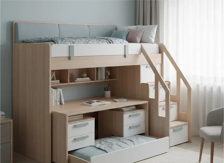 Грамотно спроектированная детская комната на заказ освобождает центр помещения для активного движения, используя вертикальные поверхности и ниши для скрытого хранения вещей. Мы проектируем монолитные конструкции, которые могут объединять в себе спальное место, рабочий стол и вместительный гардероб. Совет эксперта от Бехзода Рахимова: Проверяйте качество обработки торцов каждой детали. Прочная кромка ПВХ толщиной 2 мм, приклеенная на промышленном оборудовании, защищает плиту от влаги и делает все углы травмобезопасными для активного ребенка. Такой подход превращает архитектурные выступы комнаты в полезные зоны хранения.