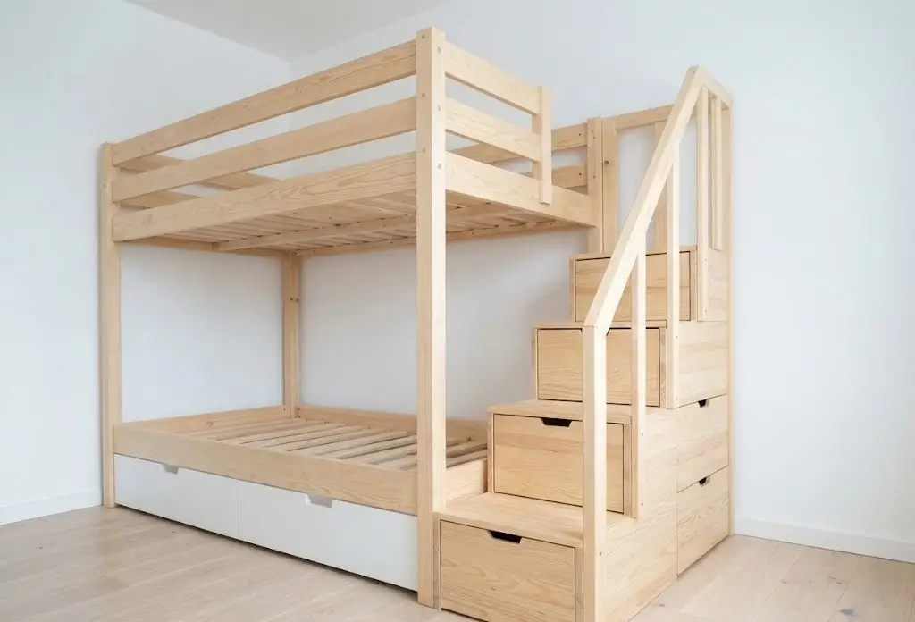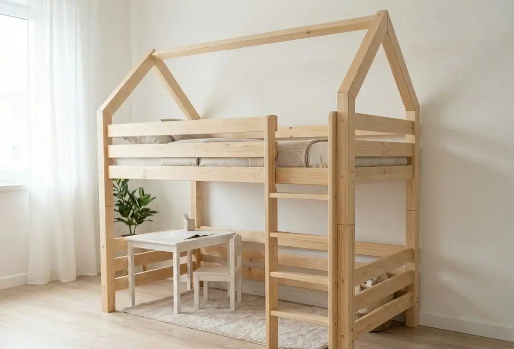 Совет эксперта от Айданы Сабитовой: Не стремитесь к рекордной высоте. Основная масса ушибов случается не при падении на пол, а при столкновении с выступающими деталями. Безопасная высота первого яруса в модели-чердаке — 110–120 см от пола до матраса. Этого хватит, чтобы разместить внизу шкаф, но недостаточно для серьезной травмы. И обязательно устанавливайте высокие бортики — они критически важны для безопасности.