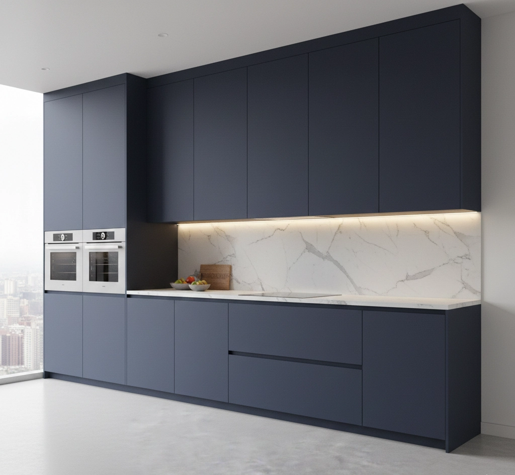 Скрытая фурнитура | Чистый минимализм без ручек. | Следы от пальцев на фасадах. |