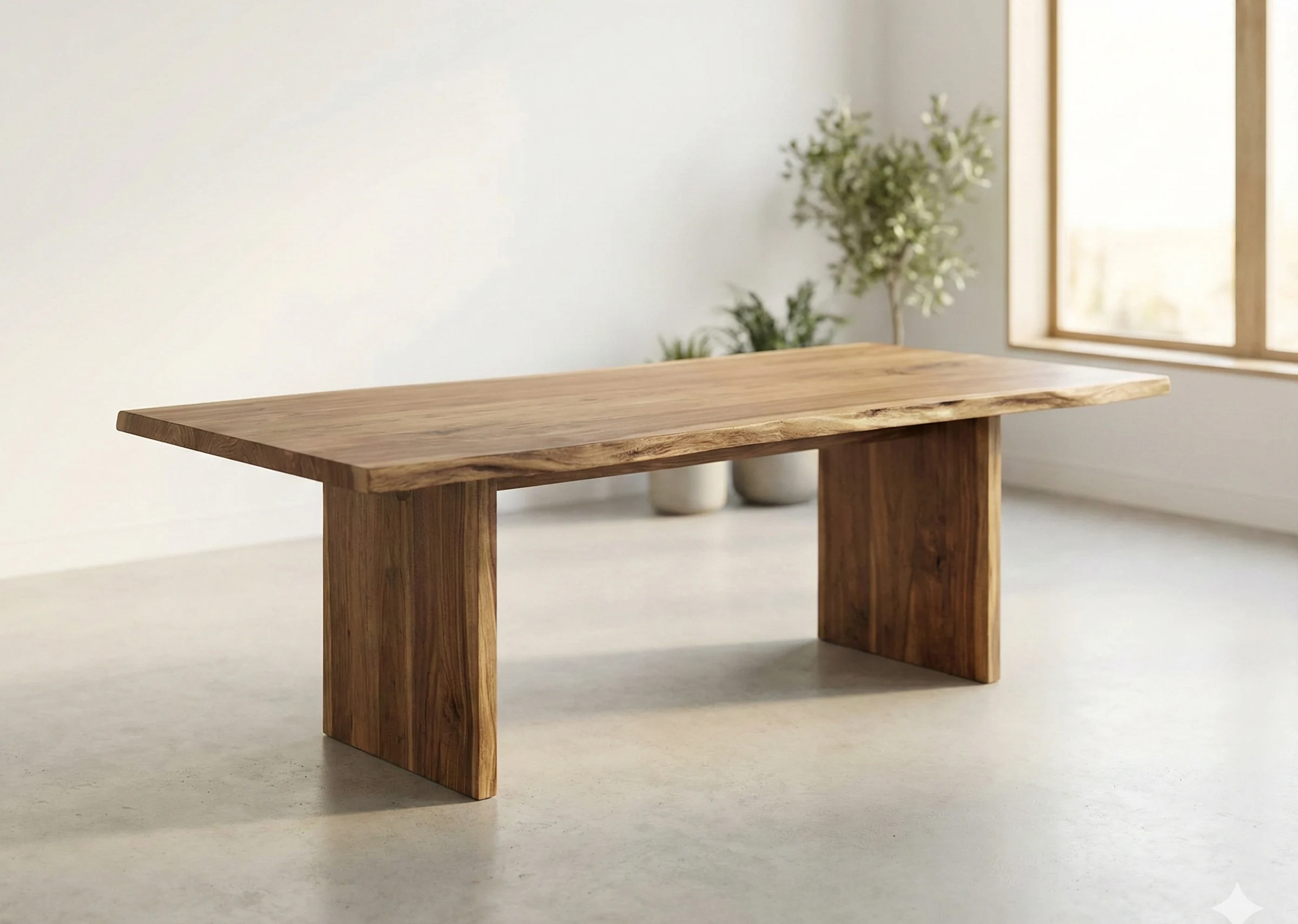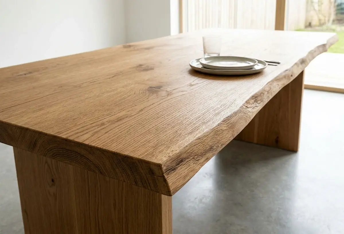 Обеденные и рабочие столы — это центры притяжения в доме. Здесь важен технологический нюанс защиты от тепла. Даже если нанесен прочный лак, не стоит ставить горячие предметы без подставок, так как разница в расширении слоев может привести к повреждению покрытия.