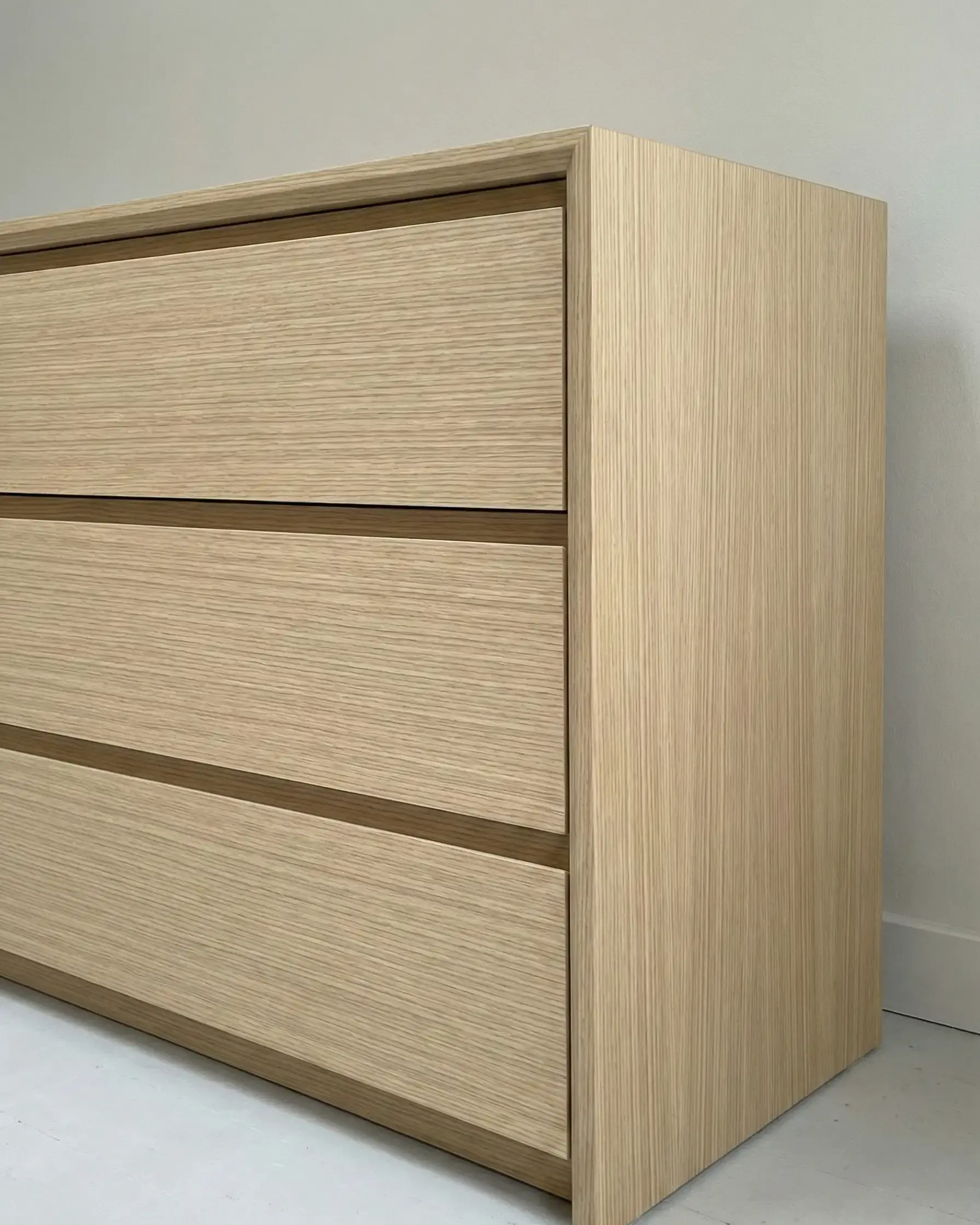 Применяем технологию Bookmatch: стыкуем листы шпона с точностью до 0,5 мм. В 100% заказов текстура переходит с фасада на фасад беспрерывно, создавая единое полотно дерева.