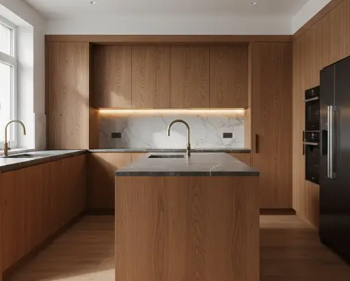 Совет эксперта от Аскара Ержанова: Всегда проверяйте образцы фурнитуры тактильно. Хорошая направляющая для ящика должна быть тяжелой, из толстой стали, и двигаться абсолютно плавно. Это инвестиция в ваш ежедневный комфорт, на которой категорически нельзя экономить в угоду внешнему декору.