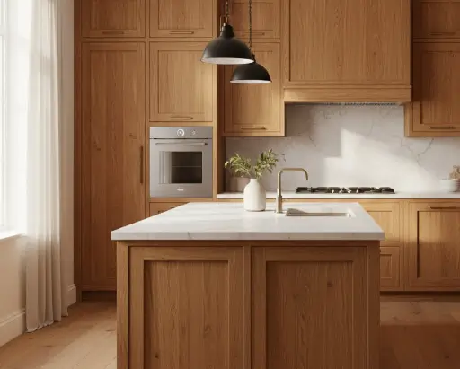 Кухни с фасадами под дерево