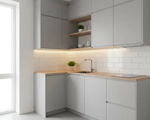 Производим кухни на собственном цехе площадью 800 м². Средний срок установки — 3 часа, без пыли и повреждений стен или пола.