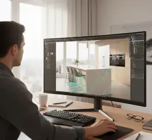 Получите 3D-рендер кухни в интерьере за 0 тг. Более 65% клиентов утверждают проект с первого визуала без правок.