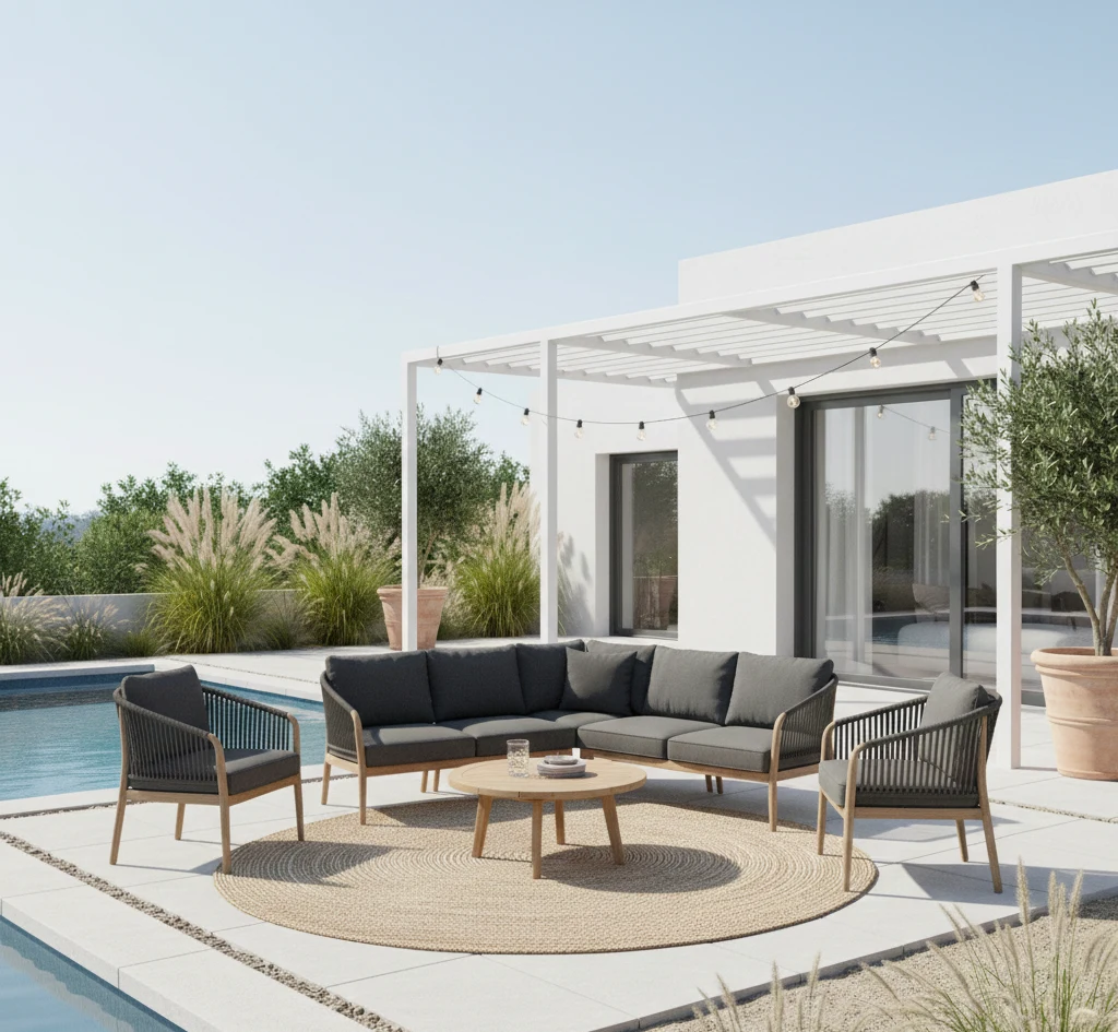 Мебель выдерживает перепады от −30°C до +40°C. Материалы протестированы на 1 000+ циклов жары и мороза без деформаций и трещин.