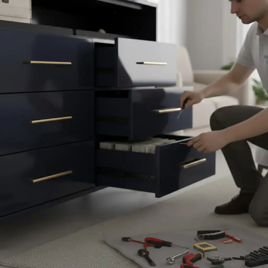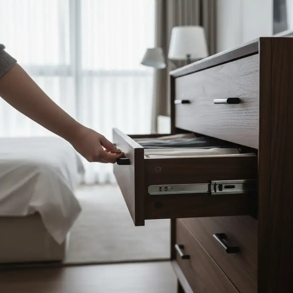 Качество и долговечность изделия на 80% зависят от скрытых механизмов. Гремящие роликовые направляющие, которые выдвигаются лишь на две трети — это вчерашний день. Качественный комод под заказ сегодня комплектуется системами скрытого монтажа от ведущих брендов. Это обеспечивает полное выдвижение, позволяя видеть всё содержимое у задней стенки, и гарантирует плавное закрывание благодаря доводчикам, которые берегут фасады от ударов и защищают пальцы домочадцев. Такие усиленные системы легко справляются с динамической нагрузкой до 50 кг.