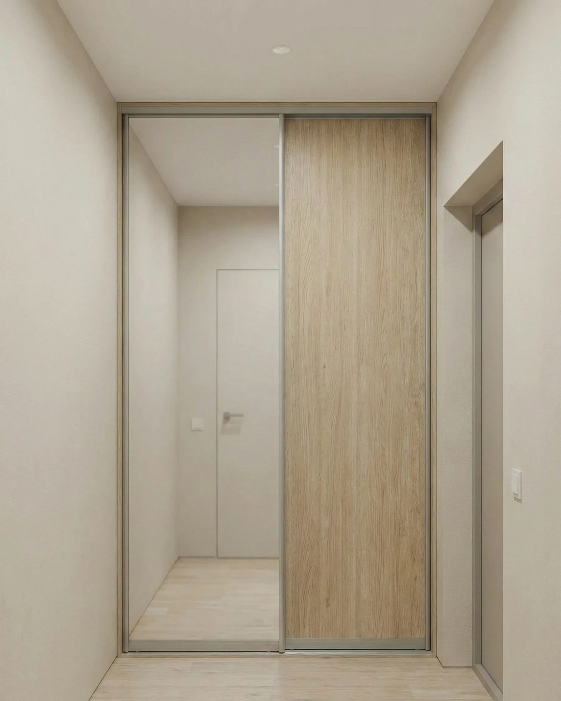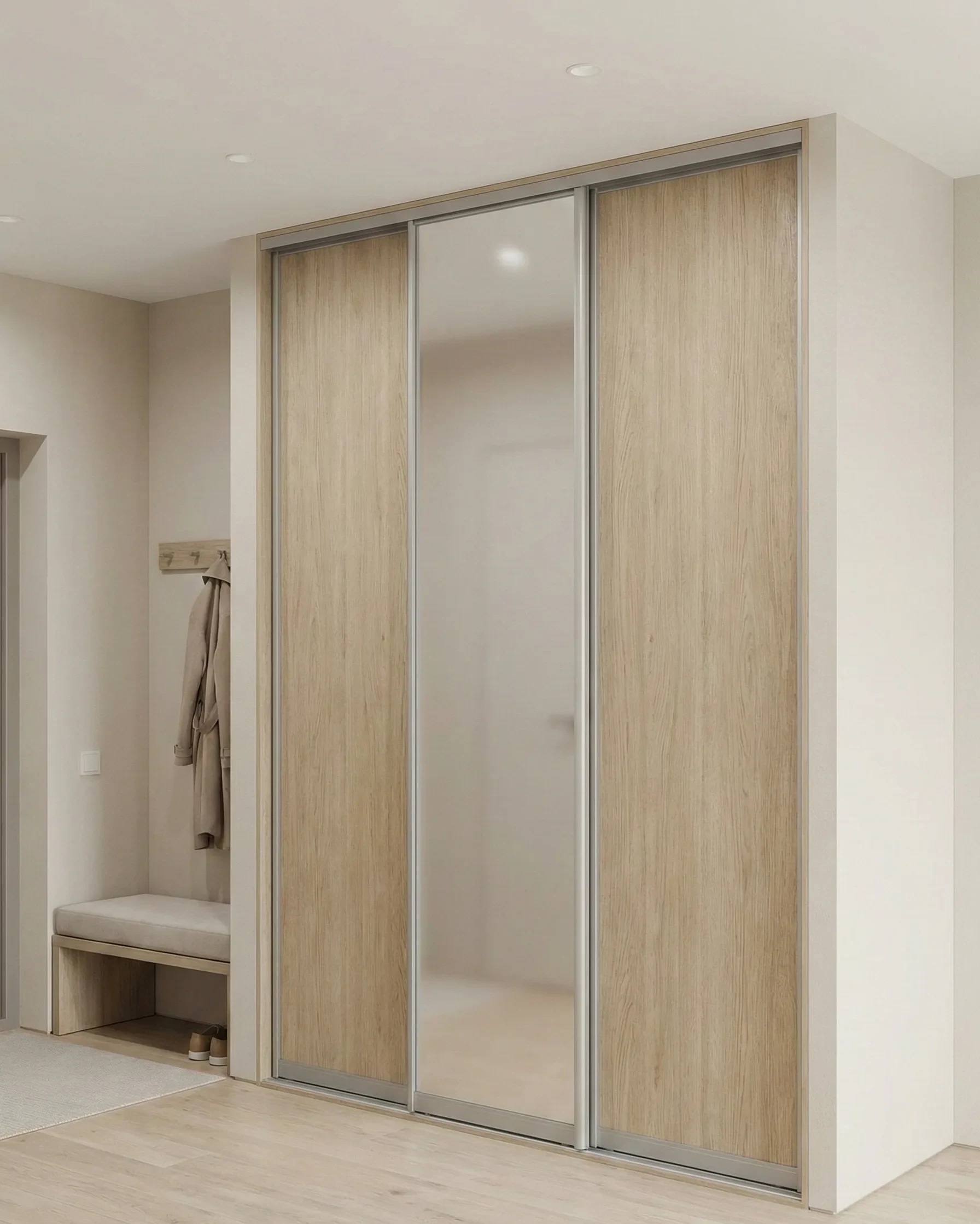 Когда вы заказываете встроенные шкафы купе в прихожую на заказ, выбор фасадов становится ключевым этапом дизайна. Зеркальные полотна визуально удваивают объем помещения и делают его светлее. ЛДСП и МДФ предлагают сотни фактур — от натурального дуба до холодного бетона. Матовое стекло (сатинато) придает интерьеру легкость, скрывая при этом содержимое полок от посторонних глаз.