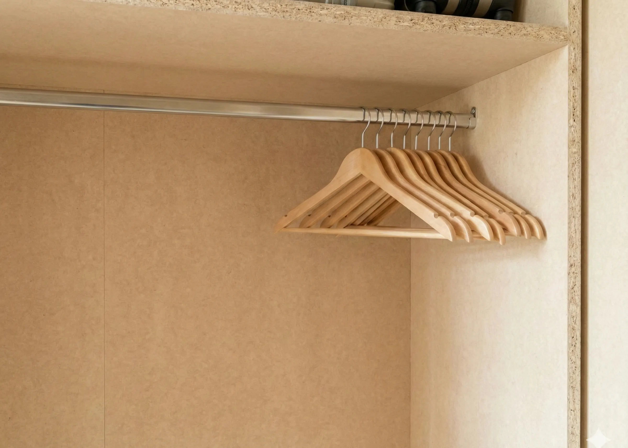 Зона верхней одежды. Штанги располагаются на высоте 100–160 см в зависимости от типа вещей.