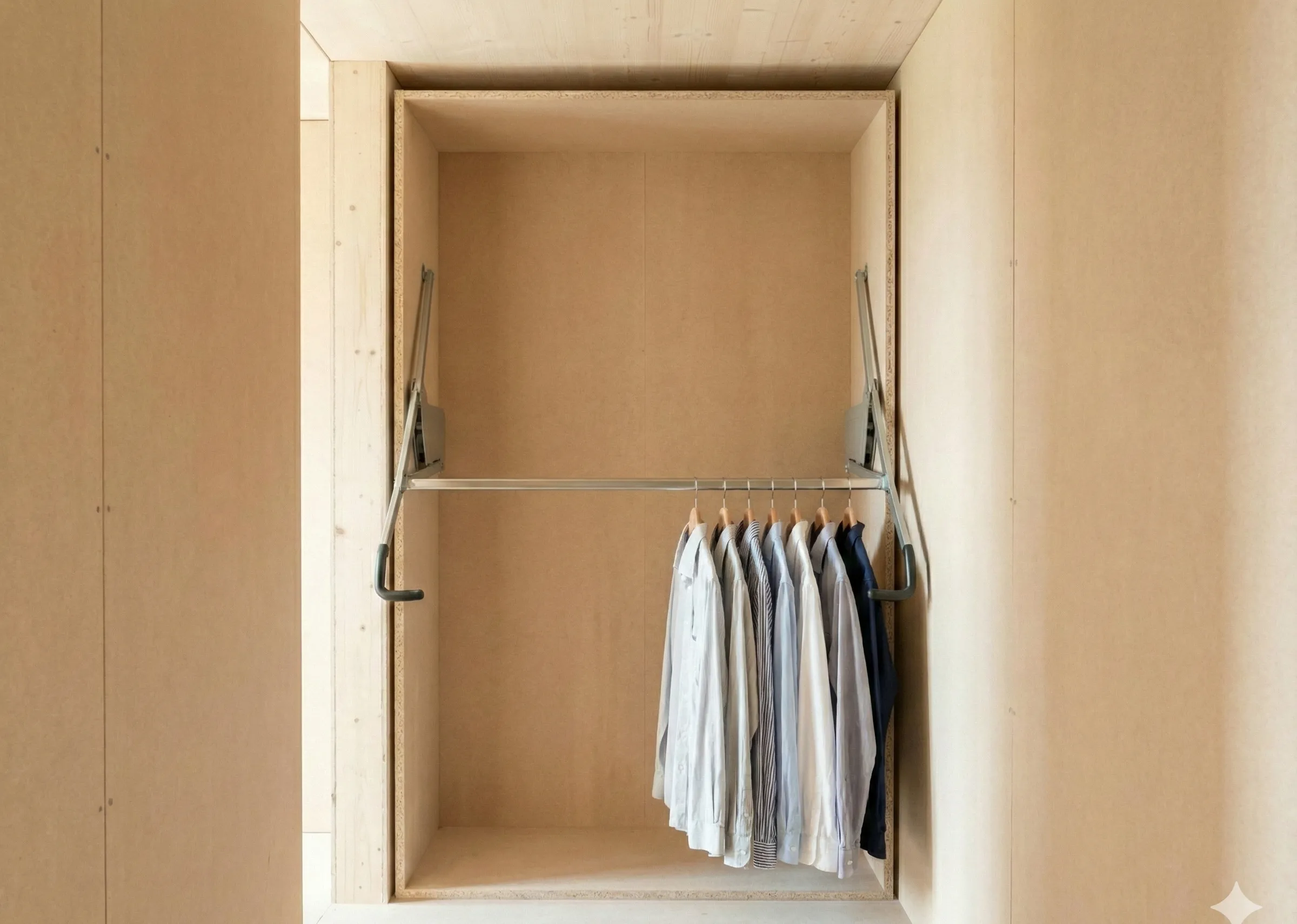 В Алматы стены в новых домах часто «дышат», давая небольшую усадку в первые годы. Жесткий корпусной шкаф в таких условиях может перекоситься, что приведет к заклиниванию механизмов. Встроенная система с независимым креплением и регулируемыми опорами гораздо терпимее к подобным микродвижениям — это ваша страховка от появления щелей и перекосов фасадов через год эксплуатации.