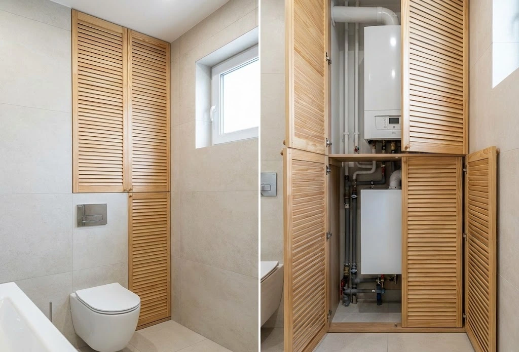 Совет эксперта от Бобуржона Нурматова: Никогда не выбирайте жалюзийные фасады из массива дерева для ванных комнат с крайне высокой влажностью. Даже защищенная древесина в таких условиях подвержена риску. Для санузлов я рекомендую использовать фасады из влагостойкого МДФ с акриловым покрытием и специальной перфорацией — это обеспечит нужный приток воздуха без риска разбухания материала.