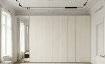 Купе | Раздвижение по параллельным направляющим | Экономит пространство перед шкафом | Открыт доступ только к одной секции. Требует ровного пола. |
