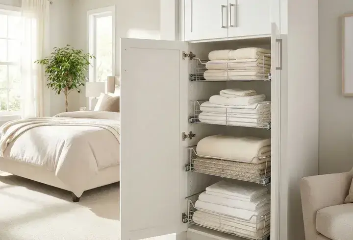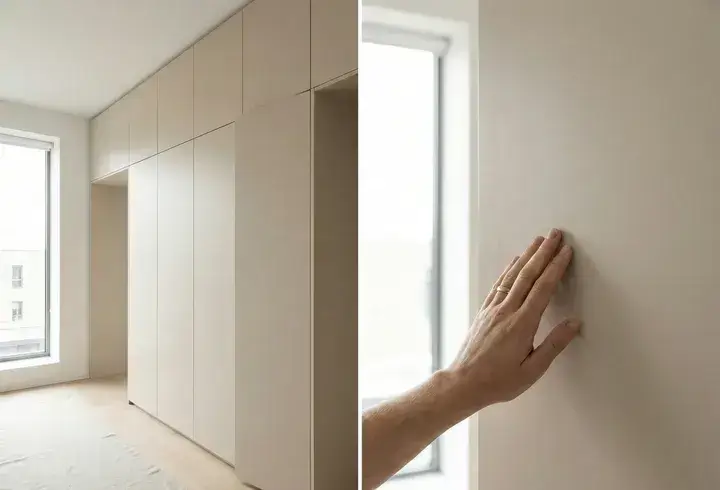 Совет эксперта от Дамира Каримова: «Избегайте фасадов из ДСП толщиной 16 мм для створок выше 180 см. Даже с ребрами жесткости со временем их может повести. Для высоких шкафов в Ташкенте мы используем плиту 22 мм или комбинацию материалов — это страховка от деформации в условиях нашего сухого отопления и очень жаркого лета. Экономия на этом пункте через два года потребует замены всей створки».