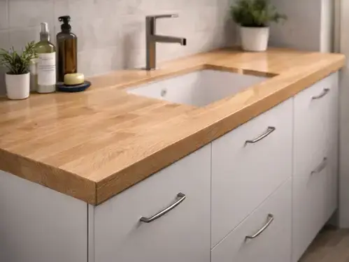 В современном дизайне Ташкента и других мегаполисов сейчас на пике популярности натуральность. Если рассматривать альтернативы, то часто предлагается влагостойкая плита мдф или искусственный камень. Однако природная древесина обладает уникальной текстурой и способностью регулировать микроклимат. Когда вы выбираете столешницы в ванную на заказ, вы получаете объект с высокими гигиеническими свойствами. Камерная сушка до влажности 8% снимает внутреннее напряжение в волокнах, что существенно повышает эксплуатационный ресурс изделия в агрессивной среде.