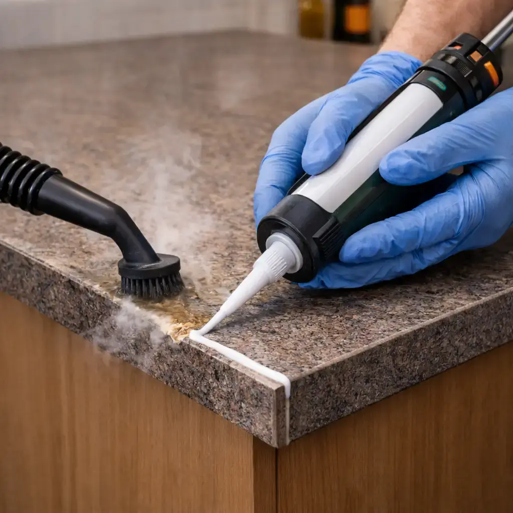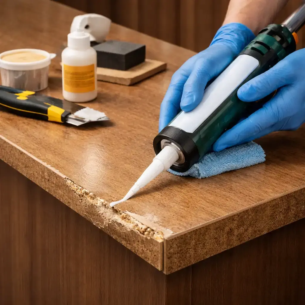 Что требуется | Глубокая очистка пор ДСП и замена герметика |