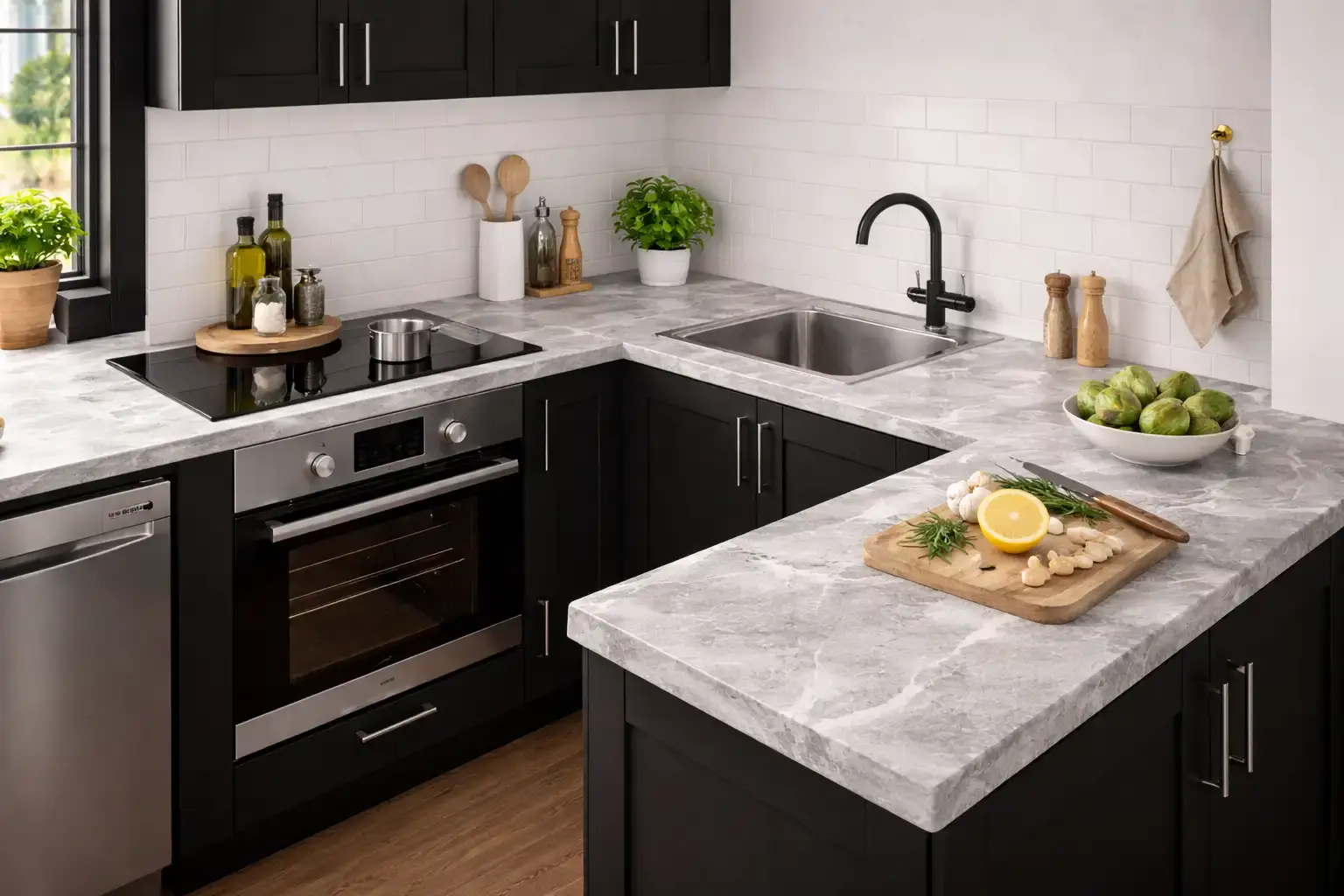 Совет эксперта: Плитные материалы обладают высокими показателями сопротивления на изгиб и кручение. Благодаря защитному слою пластика высокого давления, плоскость защищена от локального износа при постоянном механическом воздействии. Если в пространстве предполагается активная ежедневная эксплуатация, то такие инженерные решения станут рациональным вложением в интерьер. Они устойчивы к воздействию агрессивной бытовой химии, не впитывают красящие пигменты продуктов и сохраняют идеальную плоскостность в течение всего заявленного срока службы.