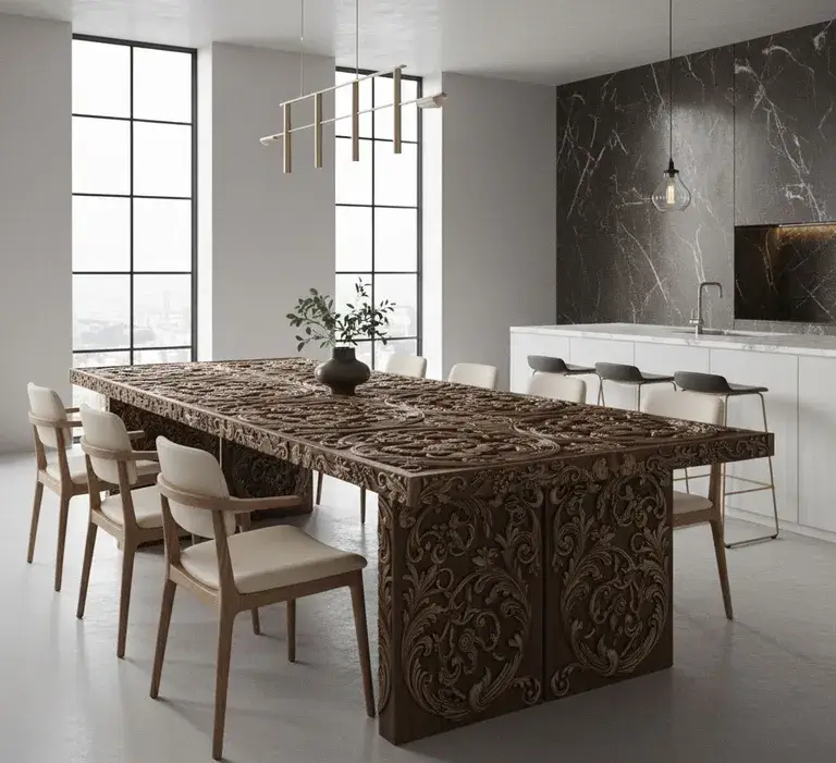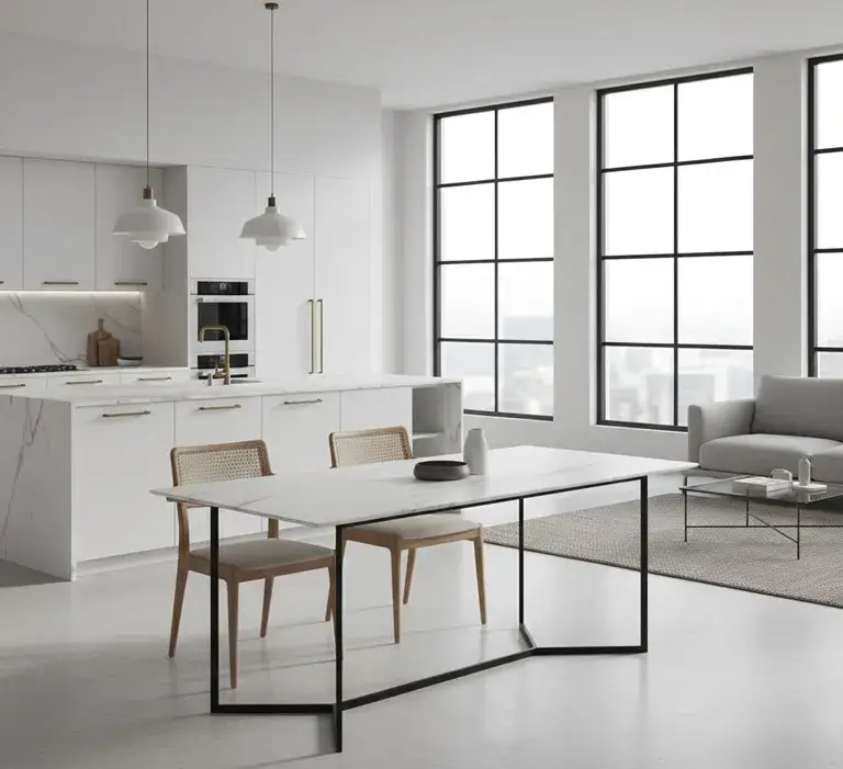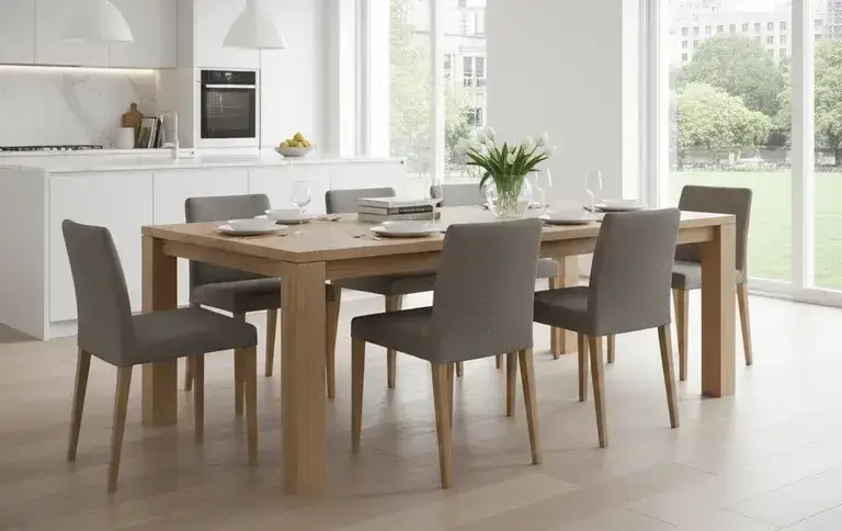 Совет эксперта от Александра Громова: Настаивайте на физических образцах отделки. Восприятие цвета и фактуры с экрана монитора может отличаться от реальности. Оцените образец при том освещении, которое преобладает у вас в комнате. Для обеденных групп это особенно критично.