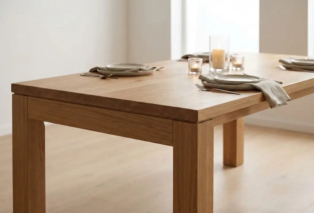 Семейный обеденный стол — сердце дома. Здесь делают уроки, обсуждают планы и встречают гостей. Нагрузка на такую мебель колоссальная: горячие тарелки, пролитый сок, работа ноутбука. Поэтому качественные столы из дерева на заказ должны выдерживать влажную уборку и не бояться случайных ударов. Для дома я рекомендую дуб или карагач. Дуб практически вечный, а карагач (вяз) имеет уникальную текстуру и отлично гасит удары. Покрытие лучше выбирать матовое — воск или масло, так как глянец быстро теряет вид при активном использовании.