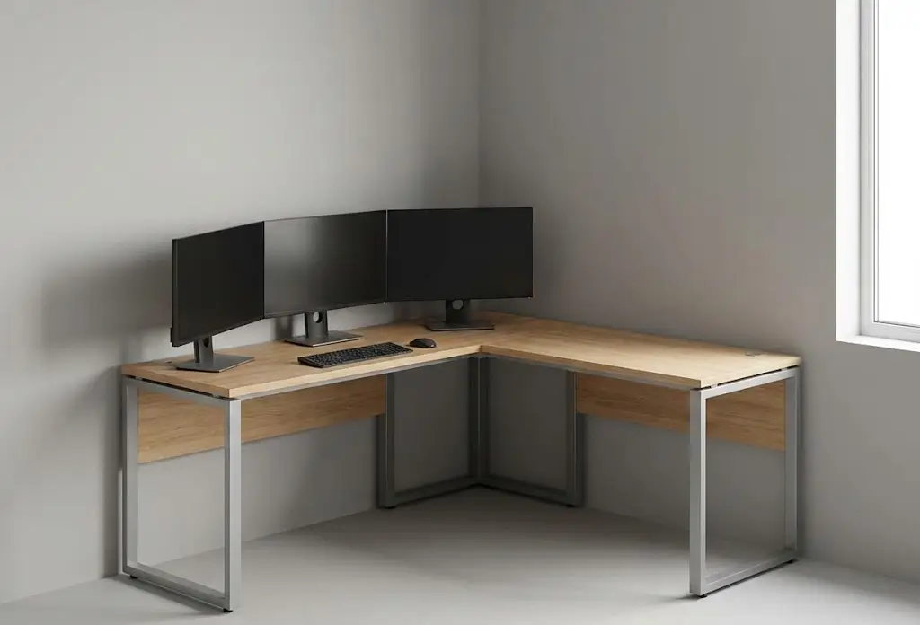 Часто архитектура комнаты диктует свои правила, и стандартный прямоугольник просто не встает на нужное место. В таких случаях угловой компьютерный стол на заказ становится идеальным выходом, позволяя задействовать «мертвые» зоны помещения. На одной стороне столешницы можно разместить рабочую станцию, а на другой — оставить место для бумаг или хобби. Это создает ощущение простора и позволяет организовать полноценный кабинет даже в небольшой спальне или гостиной.
