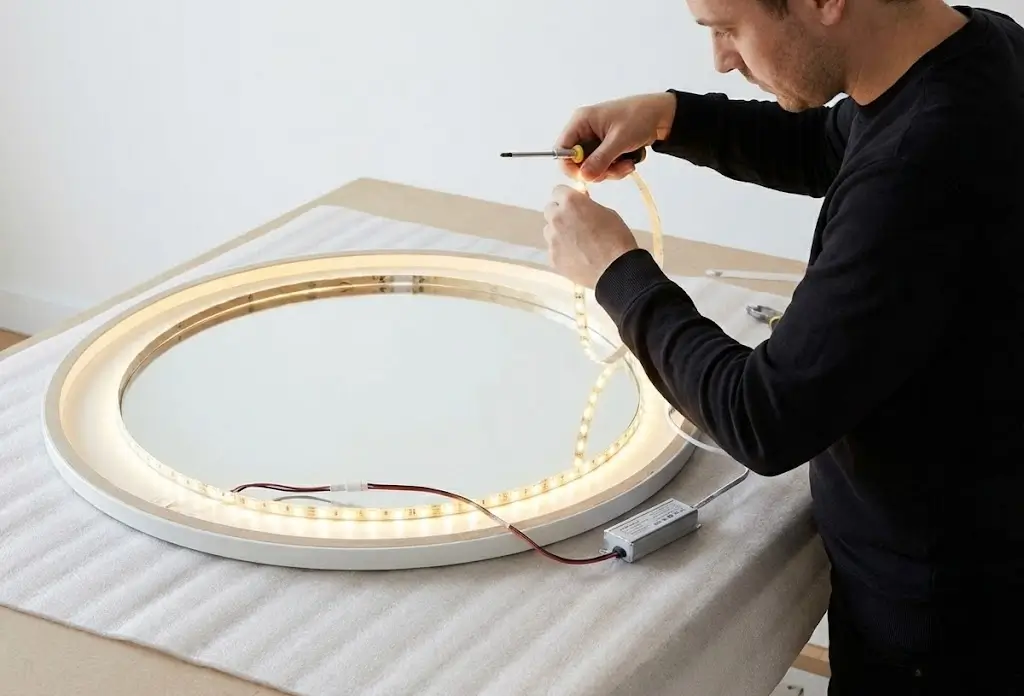 Что требуется | Монтаж 10 LED-ламп по периметру зеркала |
