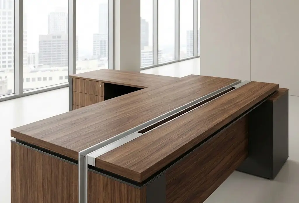 Массив дерева | Экологичность, премиальная текстура | Элитные кабинеты, дизайнерские столы | Требует контроля влажности в комнате |