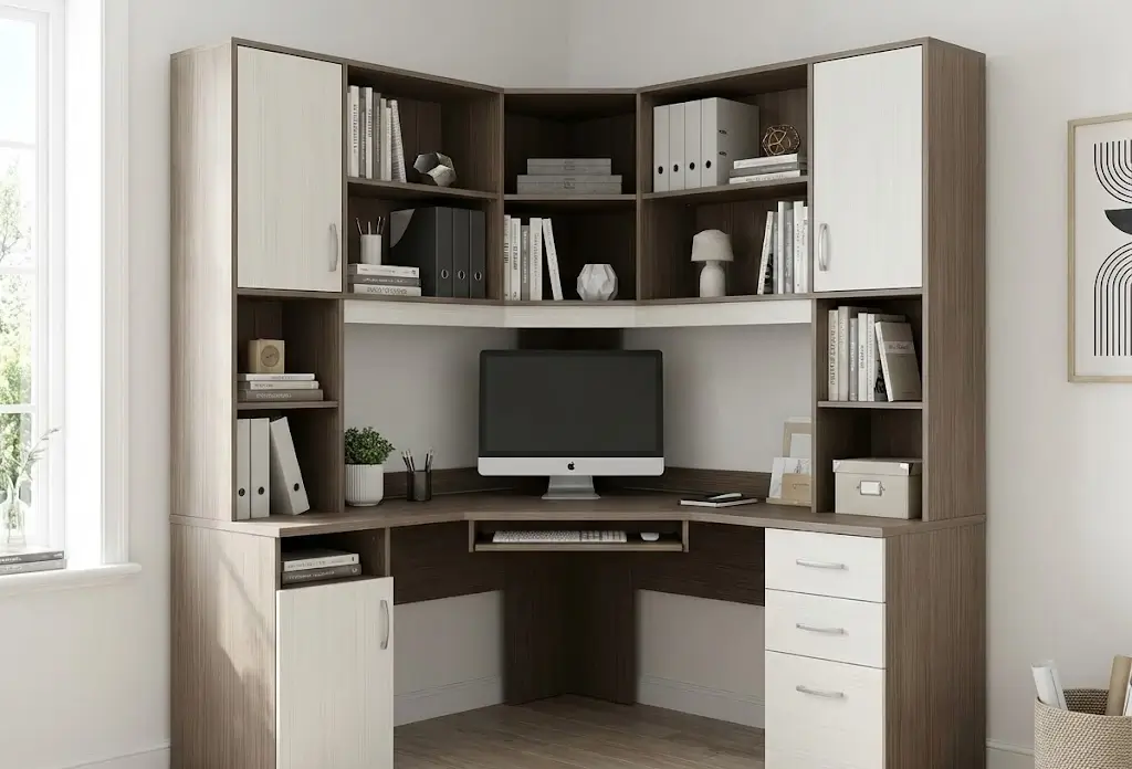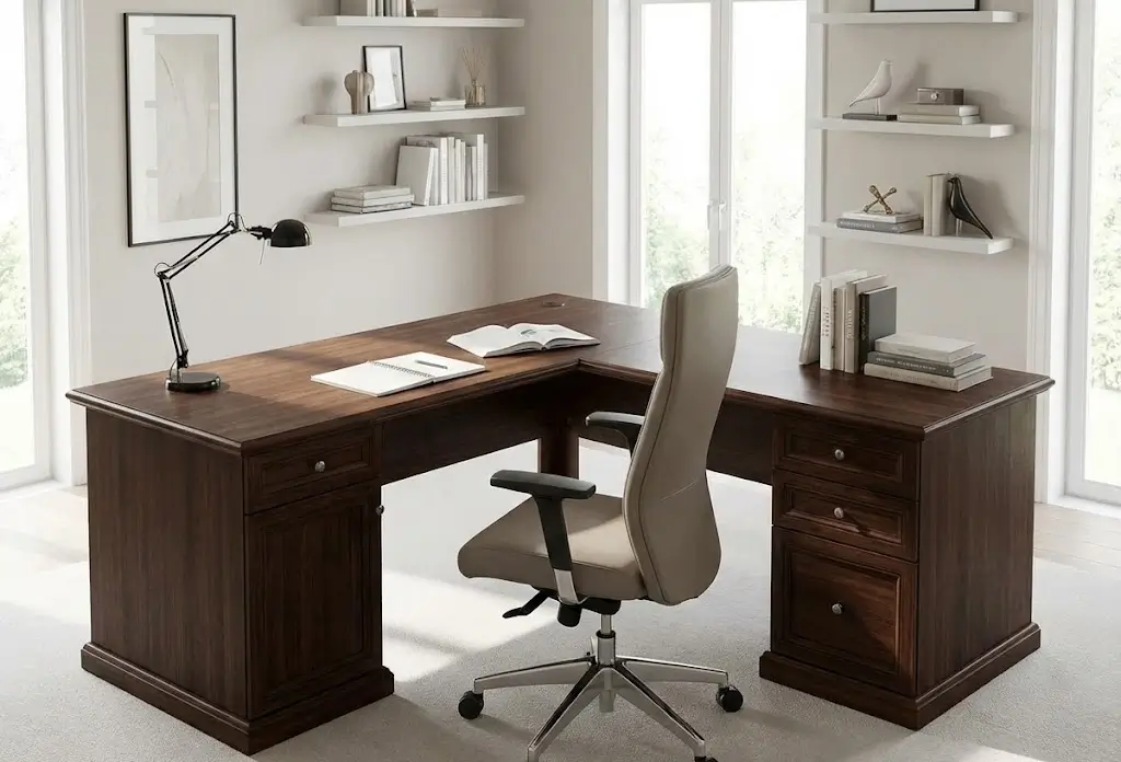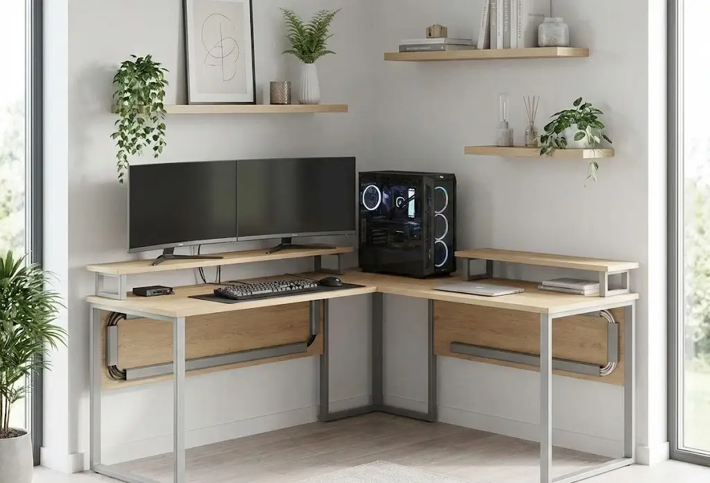 Конструкция L-формы увеличивает рабочую зону на 1,5 м² без загромождения комнаты. Идеально подходит для малогабаритных квартир Ташкента и офисных зон open-space.