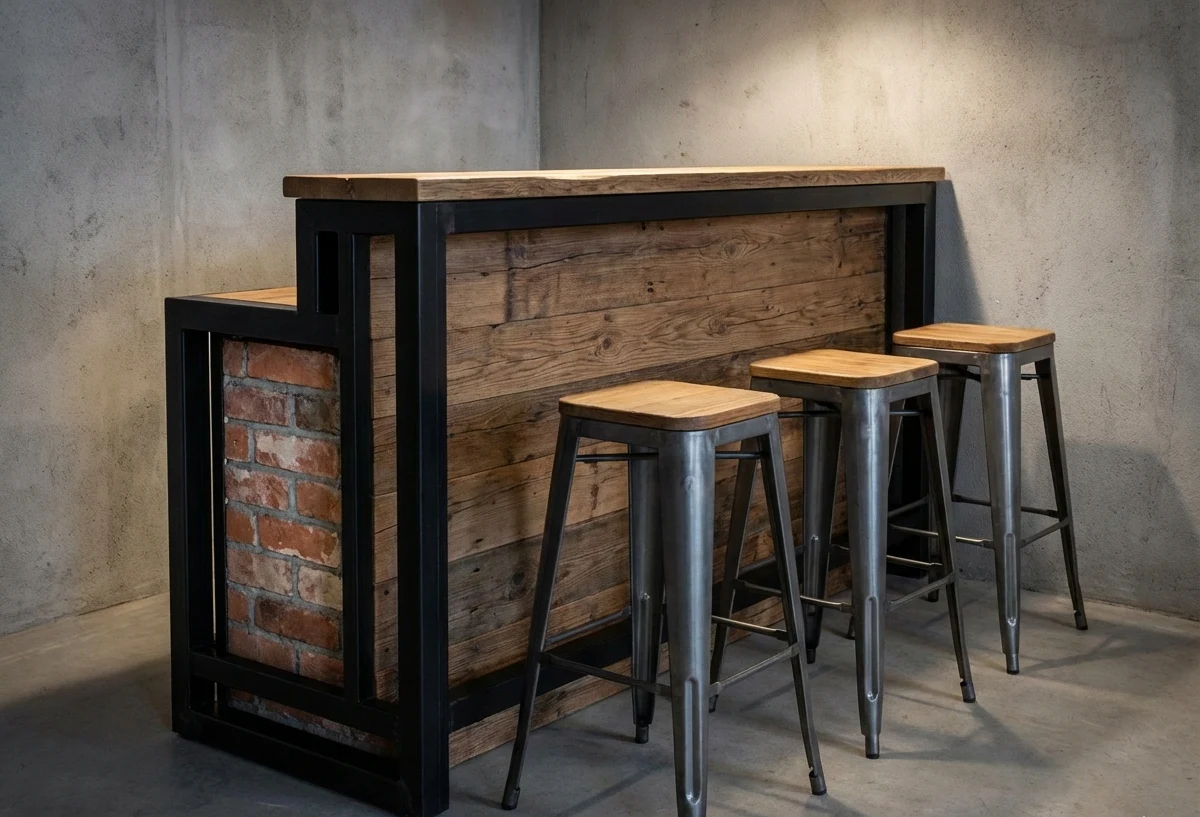 В коммерческих интерьерах, таких как бары, барбершопы или современные офисы, акцент смещается на сверхнагрузки и вандалоустойчивость. Профессиональное изготовление мебели в стиле лофт для бизнеса подразумевает использование более толстого металлопроката и специальных износостойких покрытий. Здесь допустимы более суровые приемы отделки: эффект патины, имитация ржавчины или нарочито видимые сварные швы, подчеркивающие брутальный характер бренда.