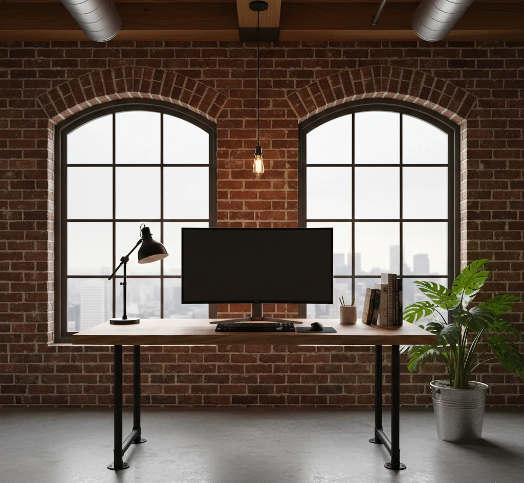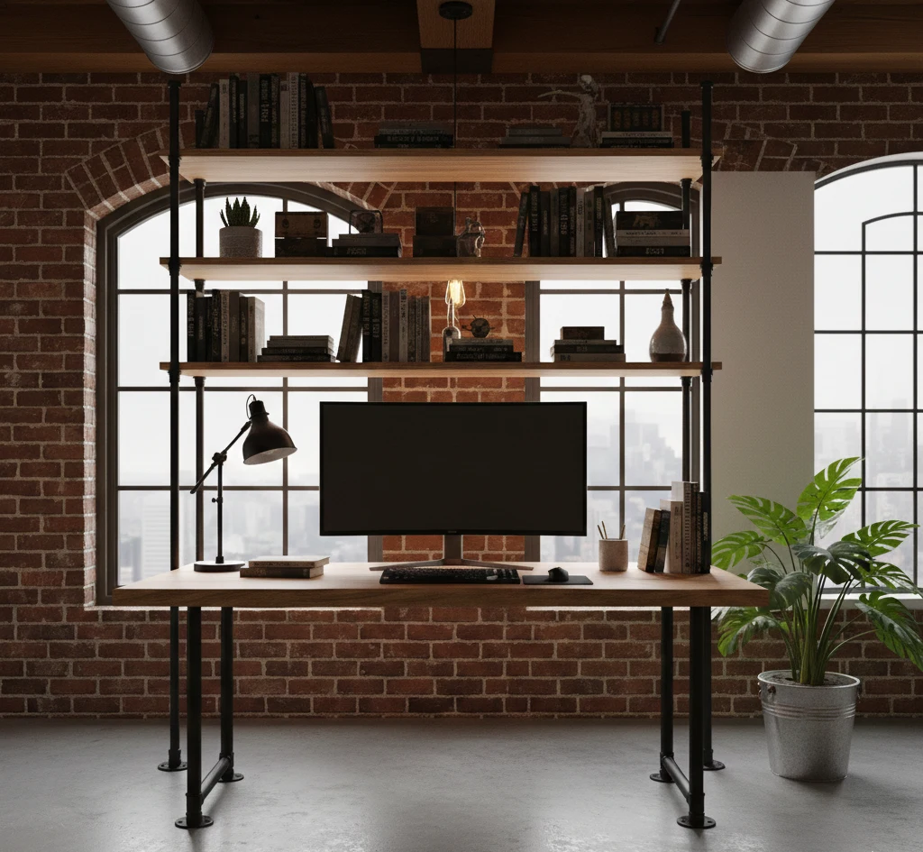 Рабочий стол в индустриальном стиле: пространство для концентрации