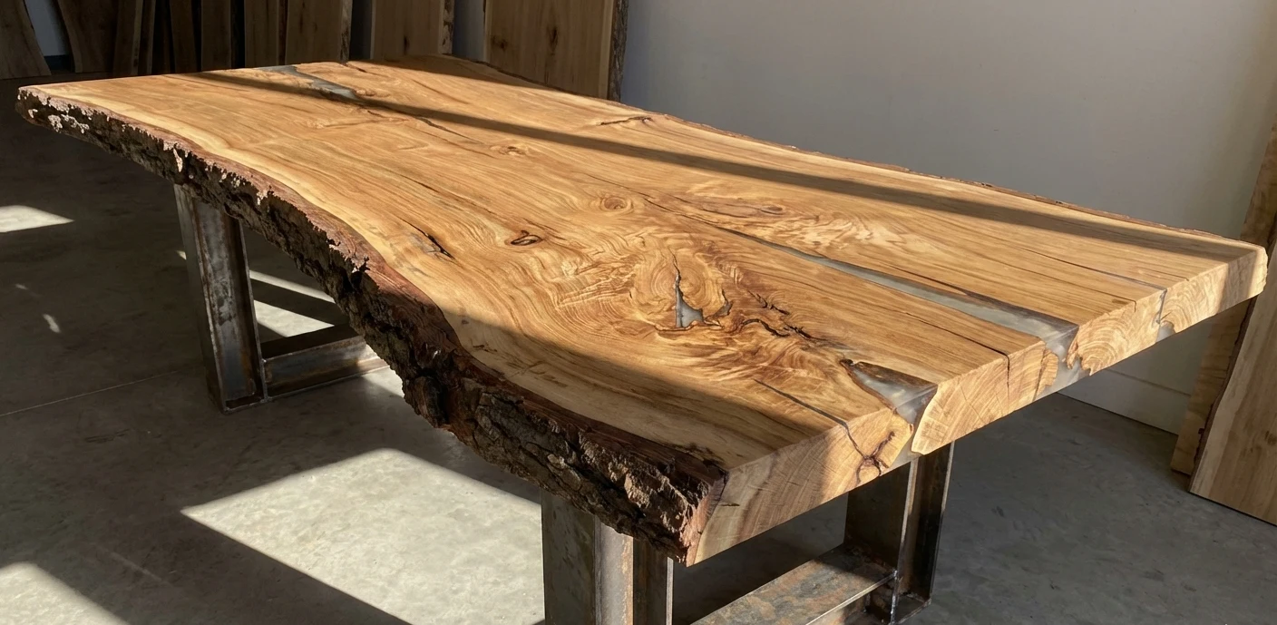 Карагач, широко распространенный в нашем регионе, обладает уникальным, энергичным рисунком с хаотичным переплетением волокон. По прочности на изгиб он не уступает дубу, а его золотисто-коричневый оттенок необычайно красив. Ключевой нюанс работы с карагачом — обязательная профессиональная сушка. Недостаточно просушенный массив может деформироваться. Поэтому заказывая изготовление столов лофт в Ташкенте, важно обращаться в мастерские, гарантирующие правильную подготовку пиломатериала.