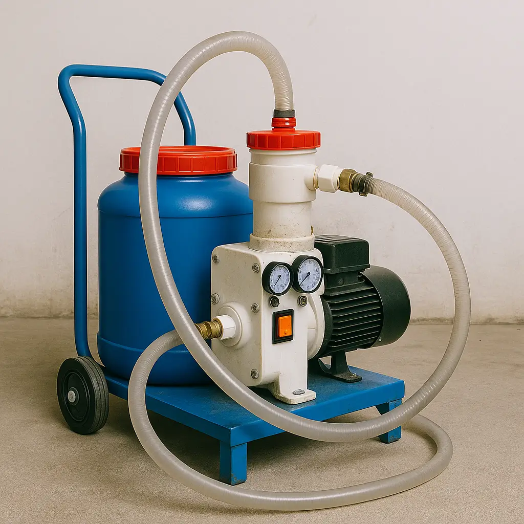 Станции Rems и Rothenberger собирают 20–30 л отходов в герметичный бак. После промывки в помещении нет грязи, запаха или следов раствора.