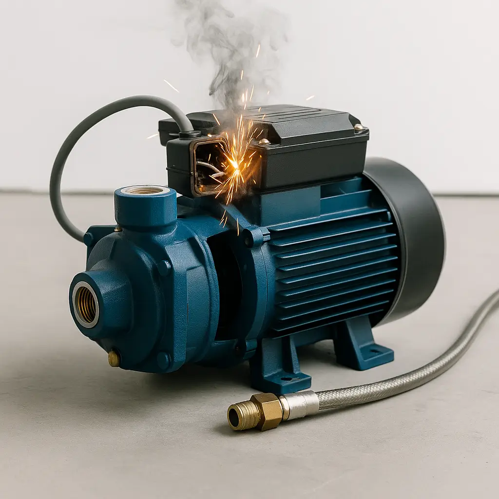 Если вы заметили запах гари, искры или дым из корпуса — немедленно отключите насос от сети. Не пытайтесь включать его повторно и не трогайте провода мокрыми руками. Отойдите от устройства и обеспечьте вентиляцию помещения. При необходимости обесточьте линию на щитке. До приезда мастера запрещено разбирать корпус или проверять внутренние контакты самостоятельно.