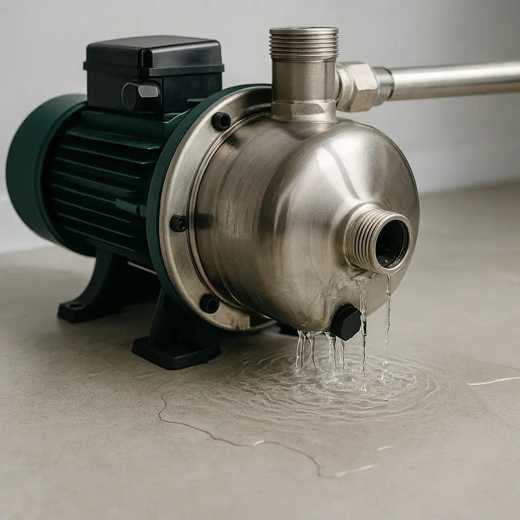 При обнаружении влаги на корпусе или фитингах отключите насос и обесточьте систему. Протрите корпус и определите место утечки. Если течь небольшая, можно временно обмотать соединение резиновой лентой или фум-лентой. Не используйте герметики на горячем оборудовании. Если течь идет из корпуса насоса, немедленно прекратите эксплуатацию — возможна трещина или разгерметизация узла.