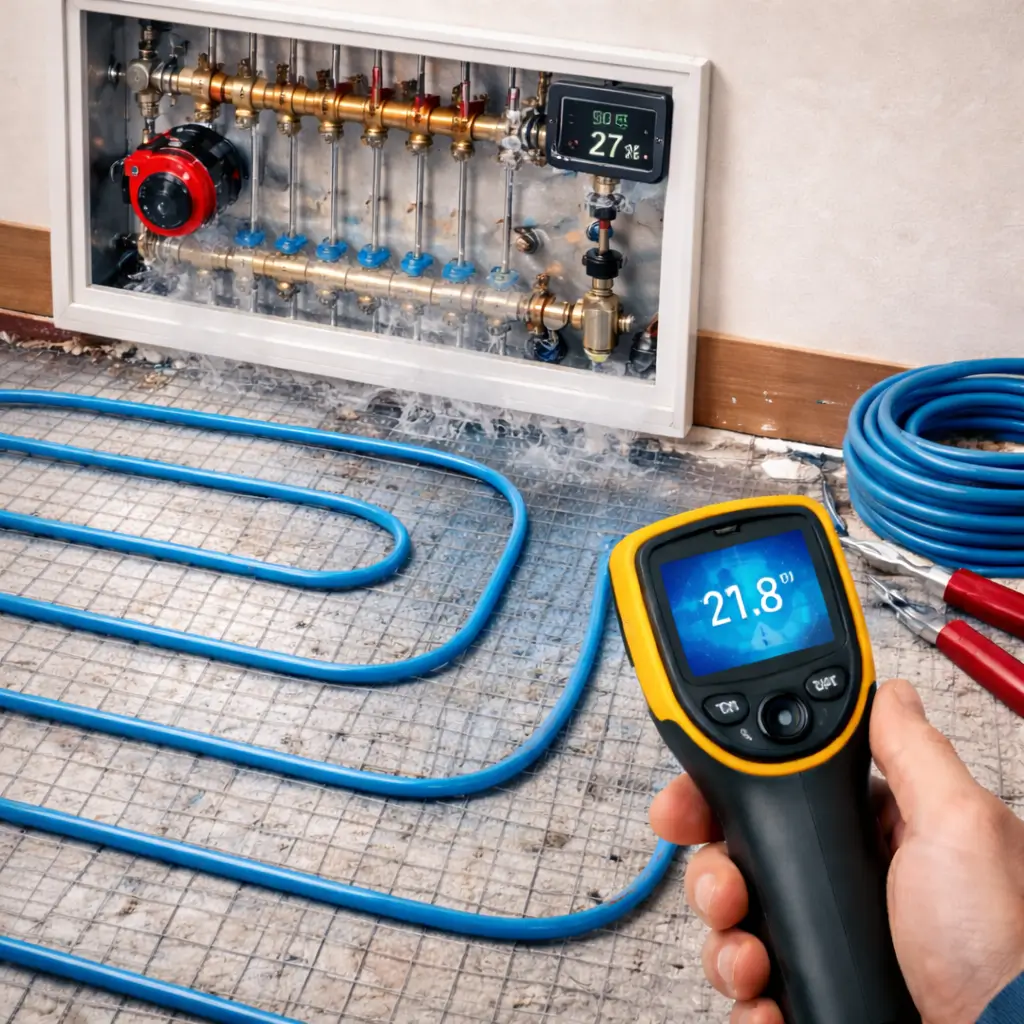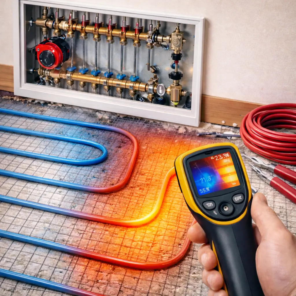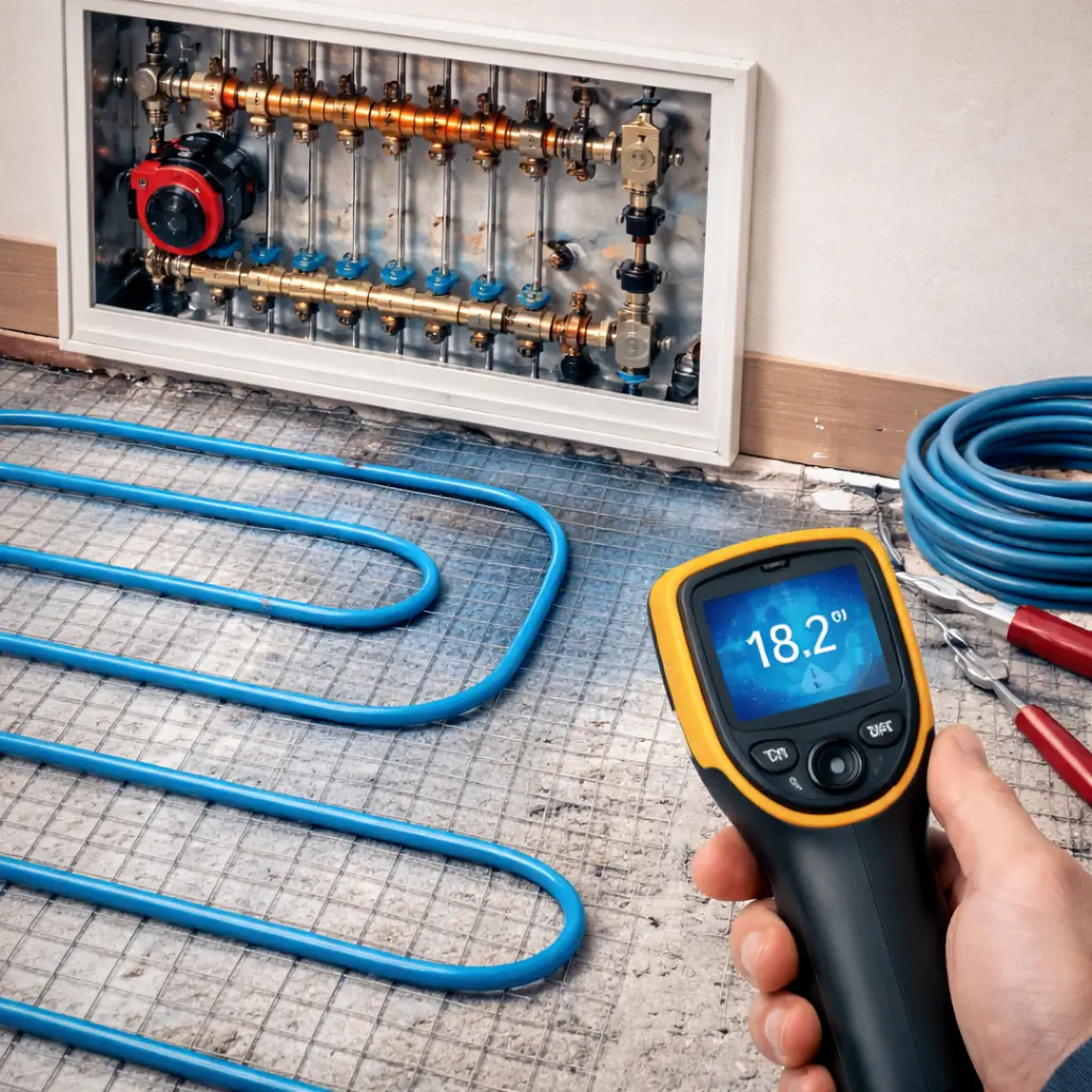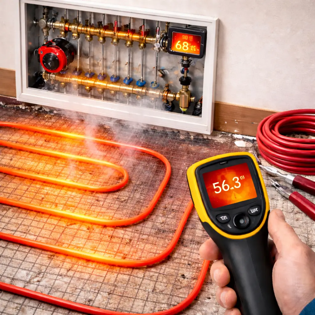 Укладка тёплого пола за 48 часов, проверка давлением 10 бар и снижение затрат на отопление до 30%.